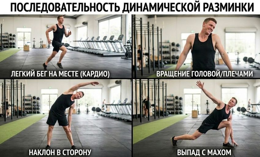 Многие недооценивают важность разминки, считая ее пустой тратой времени перед основной тренировкой. Однако пропуск разминки — одна из главных причин травматизма в фитнесе . Задача разминки — подготовить организм к нагрузке: повысить температуру мышц, увеличить приток крови, “смазать” суставы синовиальной жидкостью, настроить нервную систему. Качественная разминка длится 10-15 минут и включает легкое кардио (суставная гимнастика) и динамическую растяжку (махи, вращения, выпады без фиксации). Динамическая растяжка эффективнее статической перед нагрузкой, так как не снижает силу мышц. Разогретые мышцы лучше сокращаются и расслабляются, а риск получить растяжение или разрыв снижается в разы.